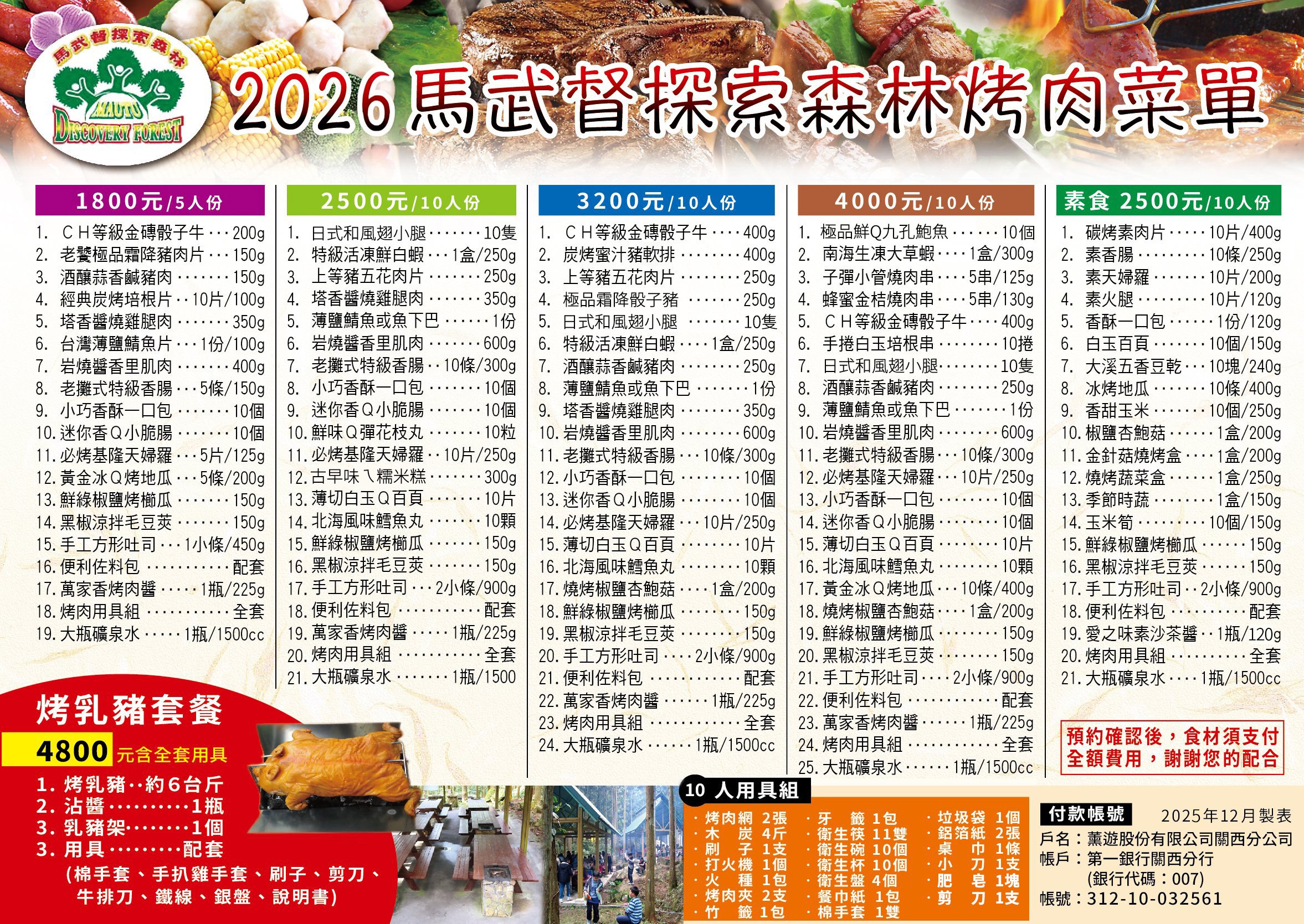2026年烤肉菜單(2026/1/1起)